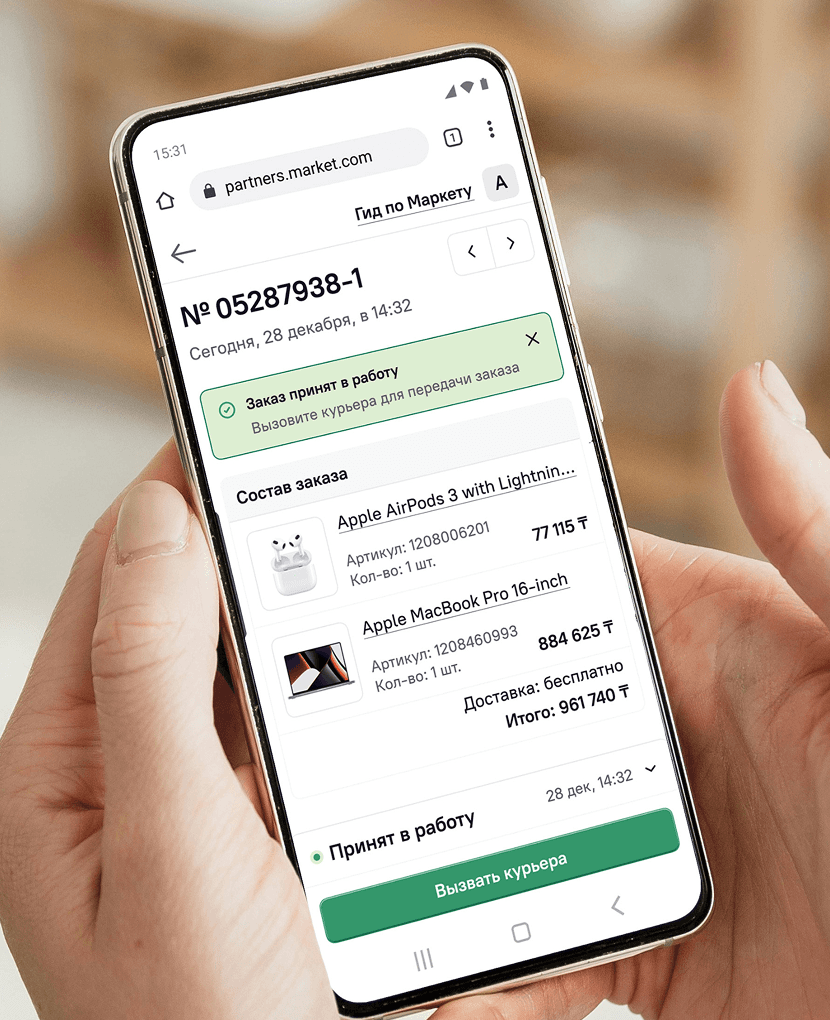 The mobile version is optimized for on-the-go tasks — order handling, stock updates, and status changes.