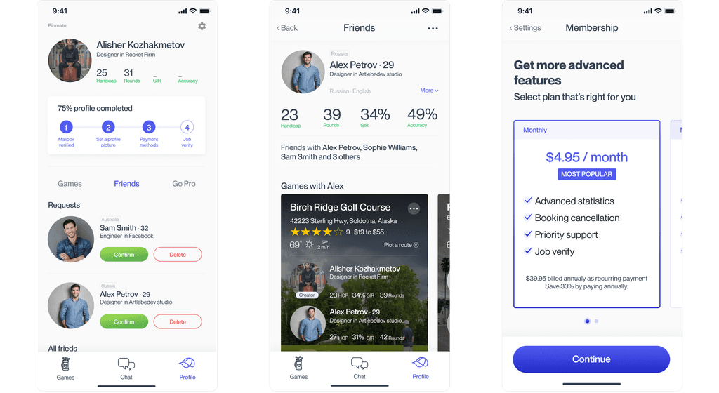 Pinmate helps players quickly find partners for a round of golf — both among friends and new people with shared interests. It’s tailored for an audience that sees golf not just as a sport, but also as a way to make valuable business and social connections.