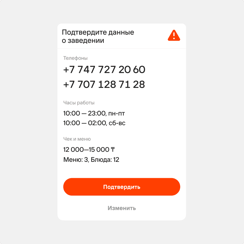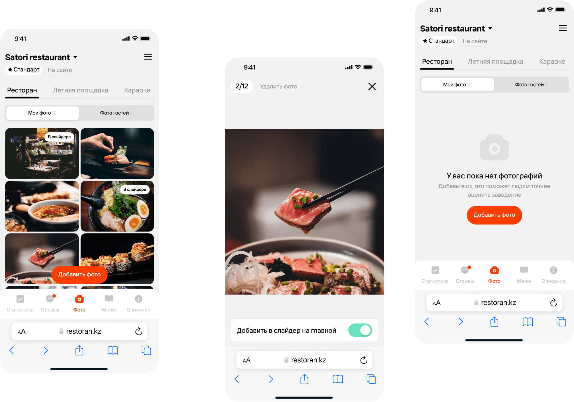 Photos play a crucial role in guest decision-making. We introduced the gallery to motivate managers to showcase their space and dishes — because listings with visuals receive significantly more attention and up to 3x more bookings.