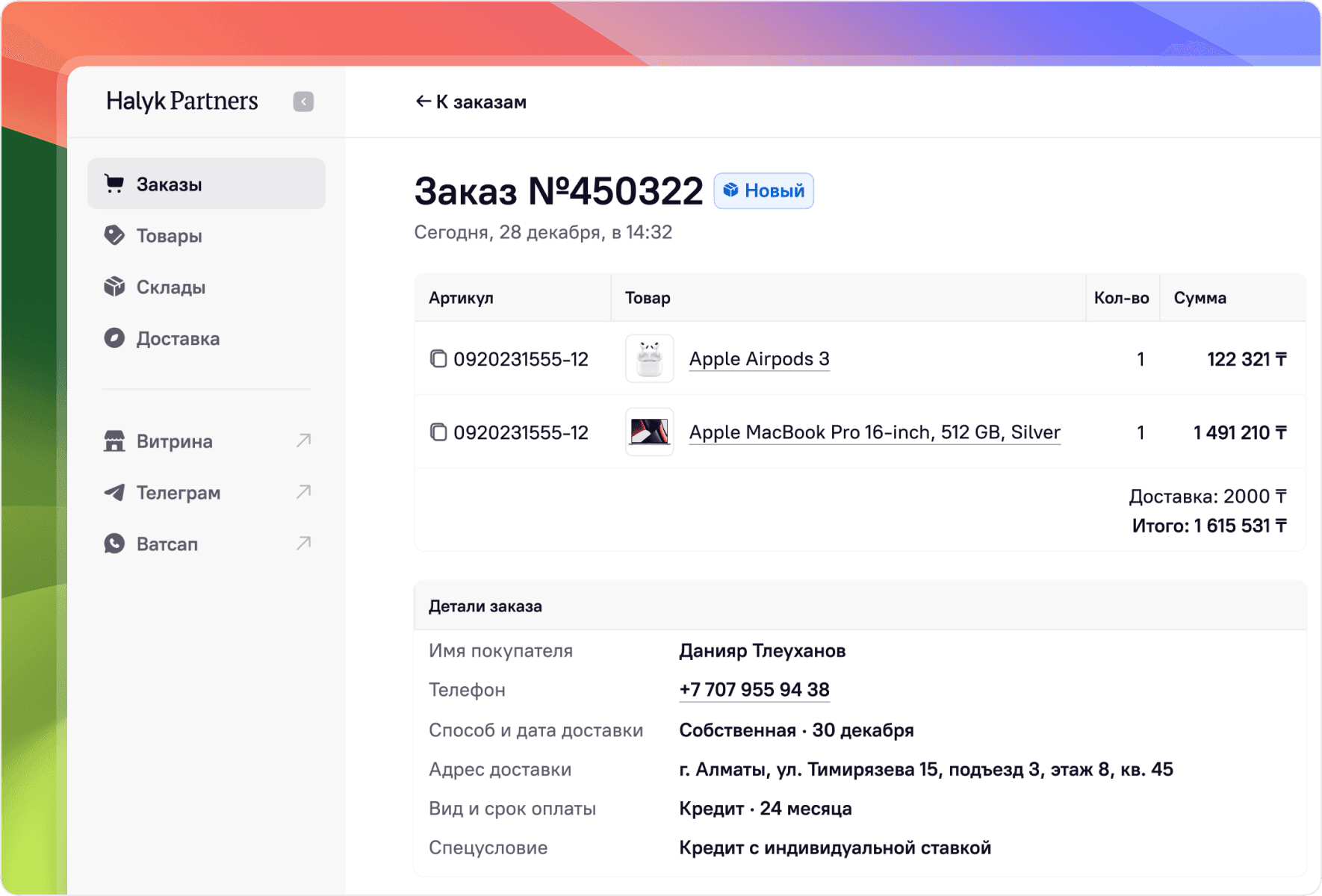 Экран заказа сфокусирован на главном сценарии — проверке и подтверждении заказов