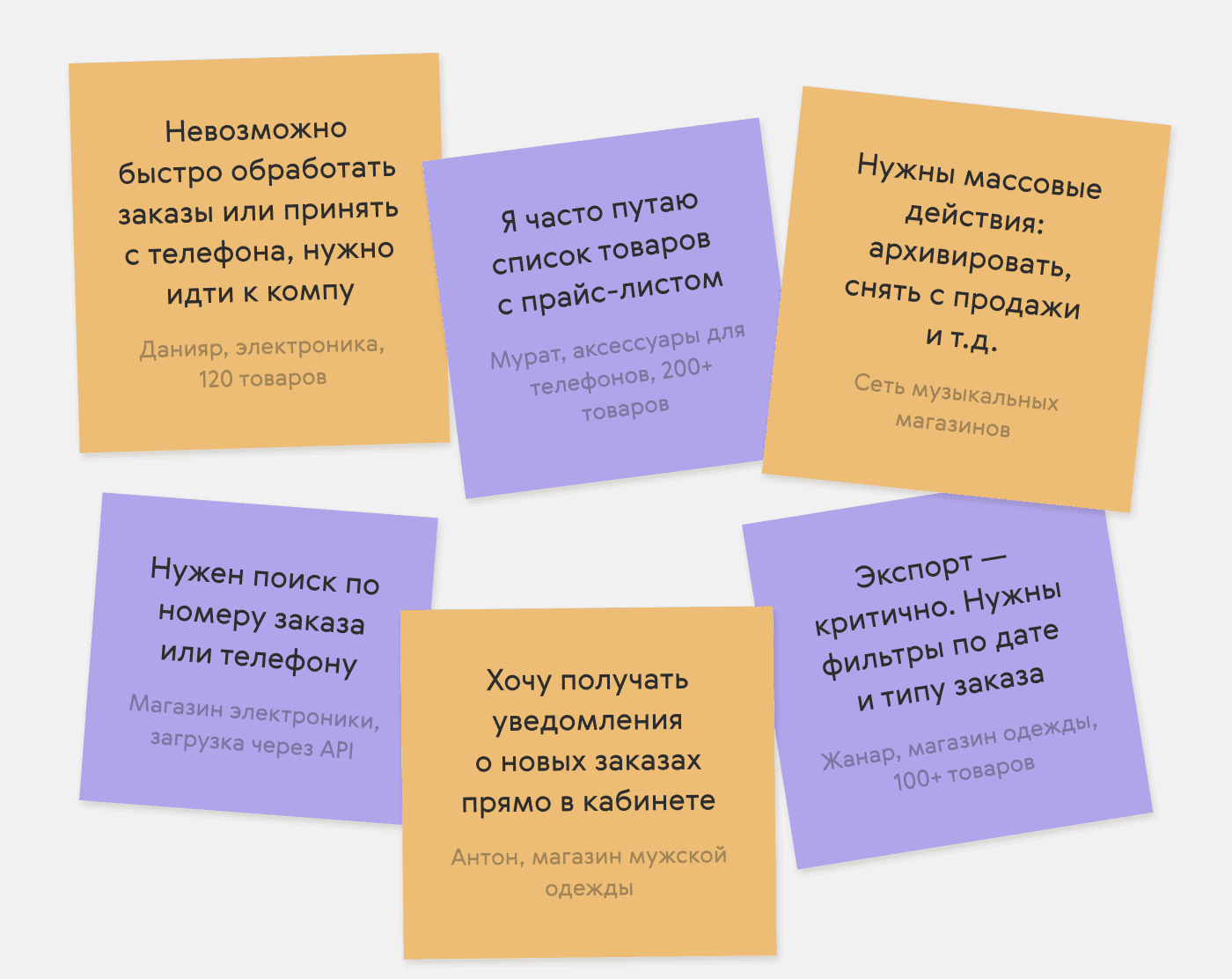 Все они регулярно использовали кабинет продавца для управления заказами, товарами и доставкой. Это помогло выявить основные болевые точки и приоритеты редизайна. Ниже — прямые цитаты респондентов: