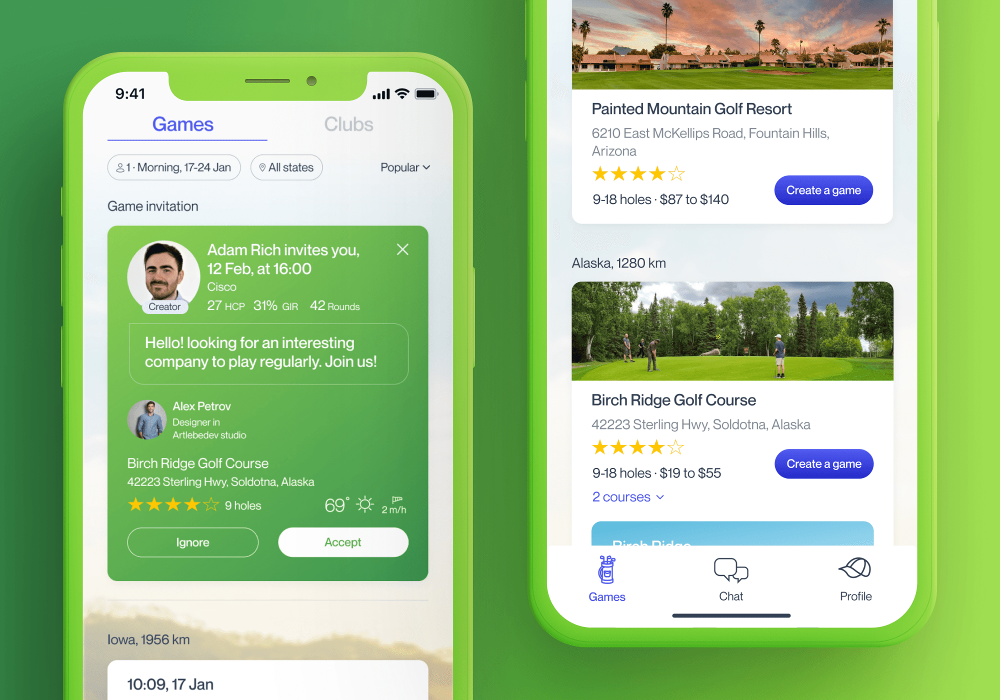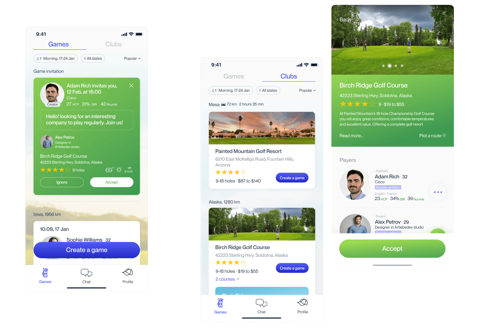 Главный экран — это не лента, а интерфейс, заточенный под быстрое подключение. Пользователь сразу видит, где может присоединиться к игре. Интерфейс адаптируется под локацию, время и активность поблизости. Умные фильтры помогают отсечь шум и быстрее найти подходящий матч.